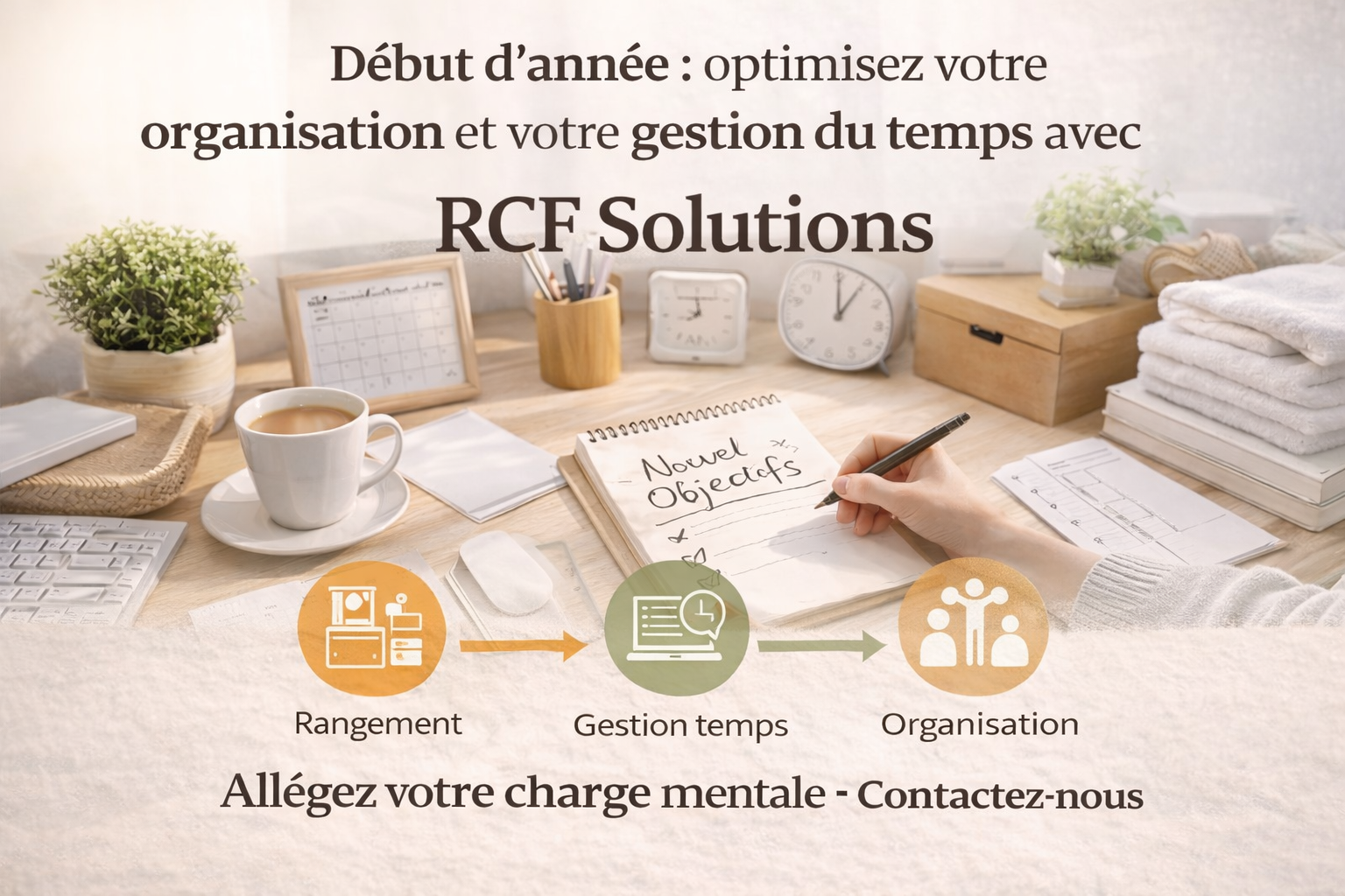 RCF Solutions accompagne particuliers et professionnels dans l’organisation, le rangement et la gestion du temps pour une performance durable et un mieux-être au quotidien.